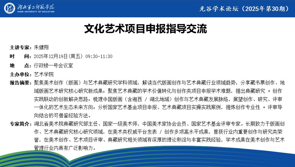 【光谷学术论坛预告】文化艺术项目申报指导交流-博天堂登陆